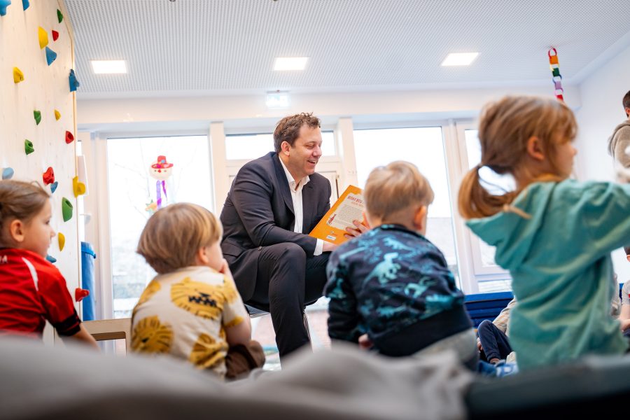 Der heimische Bundestagsabgeordnete Lars Klingbeil besuchte anlässlich des Bundesvorlesetags die Kita am Mühlenteich in Munster und las den Kindern aus einem mitgebrachten Buch vor.