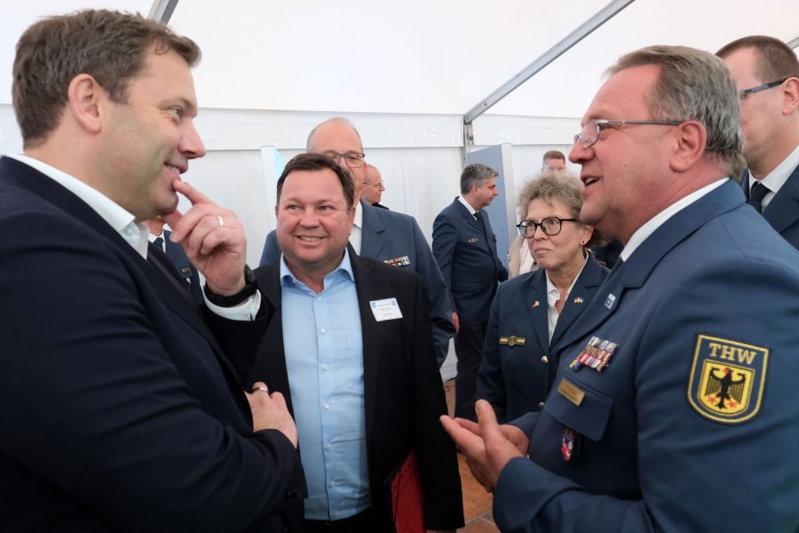 Helferinnen und -Helfer des Technischen Hilfswerks aus dem ganzen Bundesgebiet kamen mit Abgeordneten aller Fraktionen bei der Veranstaltung „MdB trifft THW“ und anlässlich des 75-jährigen Bestehens des THW ins Gespräch. Auch der heimische Abgeordnete Lars Klingbeil nutzte die Gelegenheit zum Austausch mit Thomas Kolodzi aus Soltau.